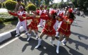 ระลึกถึงความทรงจำ นักศึกษาสวมใส่เครื่องแต่งกายที่มีสีสันสวยงาม ทำท่าทางการต่อสู้คล้ายกับนักรบของอินโดนีเซียในอดีตในกิจกรรมที่จัดขึ้น ในวันฉลองวันประกาศอิสรภาพ 68 ปี ต้นรักแปลthejakartapost...